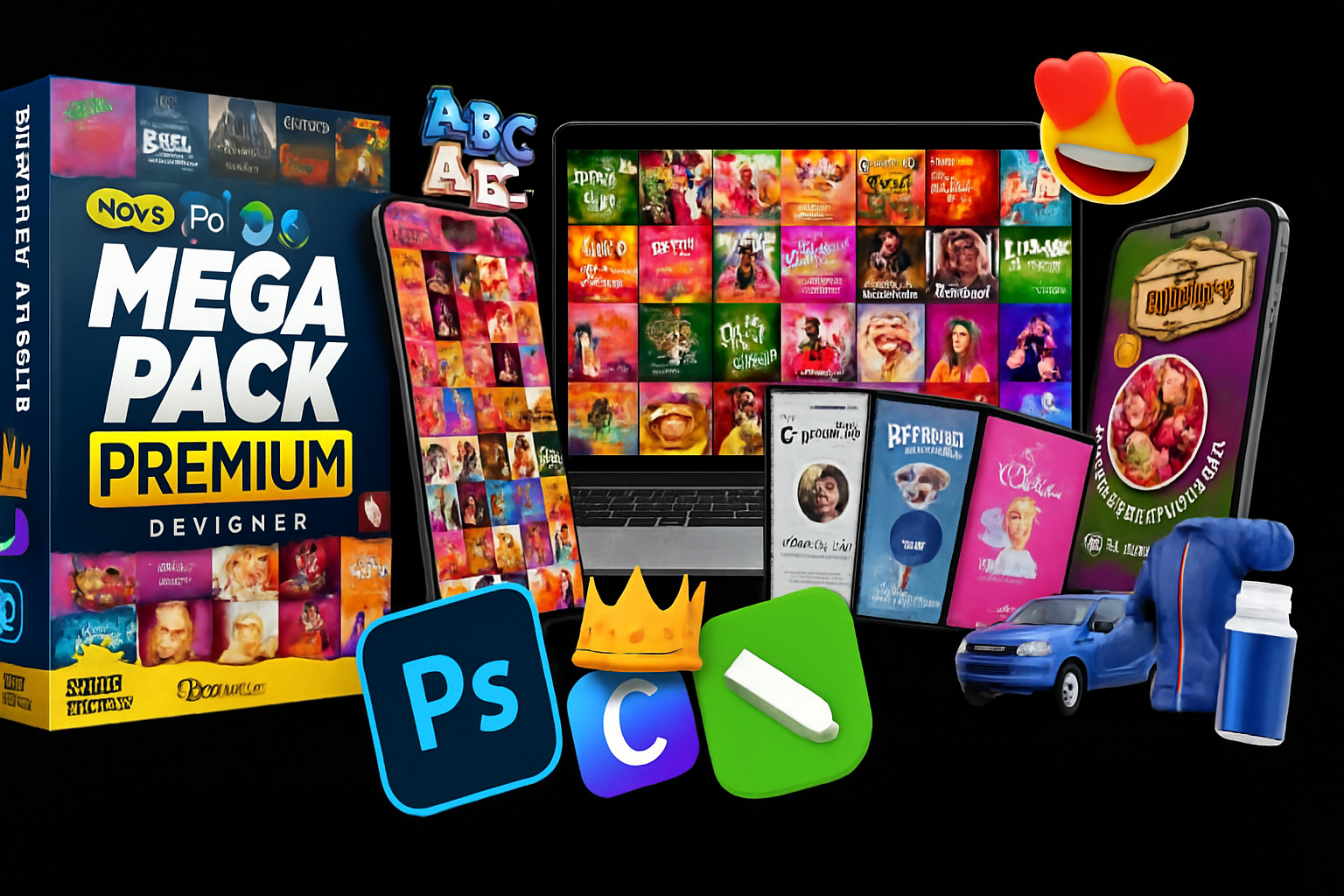 Paquete de arte editable para Photoshop, Canvas y CorelDRAW. Accede a MILES de ARTES EDITABLES, imágenes, materiales y plugins increíbles para crear obras de arte hermosas y profesionales en minutos, incluso si eres principiante.